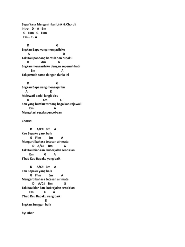 Untukmu seluruh nafas ini. F G C Jika memang dirimulah tulang rusukku F G Am Kau akan kembali pada tubuh ini F G C Ku akan tua dan mati dalam pelukmu Am G F Untukmu seluruh nafas ini F G C Jika memang dirimulah tulang rusukku F G Am Kau akan kembali pada tubuh ini F G C. Last Child Seluruh Nafas Ini Chord Intro C G Am G F Verse Am F lihatlah luka ini yang sakitnya abadi C G yang terbalut hangatnya bekas pelukmu Am F aku tak akan lupa tak akan pernah bisa C G tentang apa yang harus memisahkan kita Em F G di saat ku tertatih tanpa kau disini Em F G kau tetap ku nanti demi keyakinan ini F G C jika memang dirimulah tulang rusukku F G Am kau akan.
