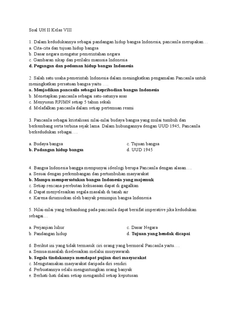 Soal Pilihan Ganda Bab Pancasila