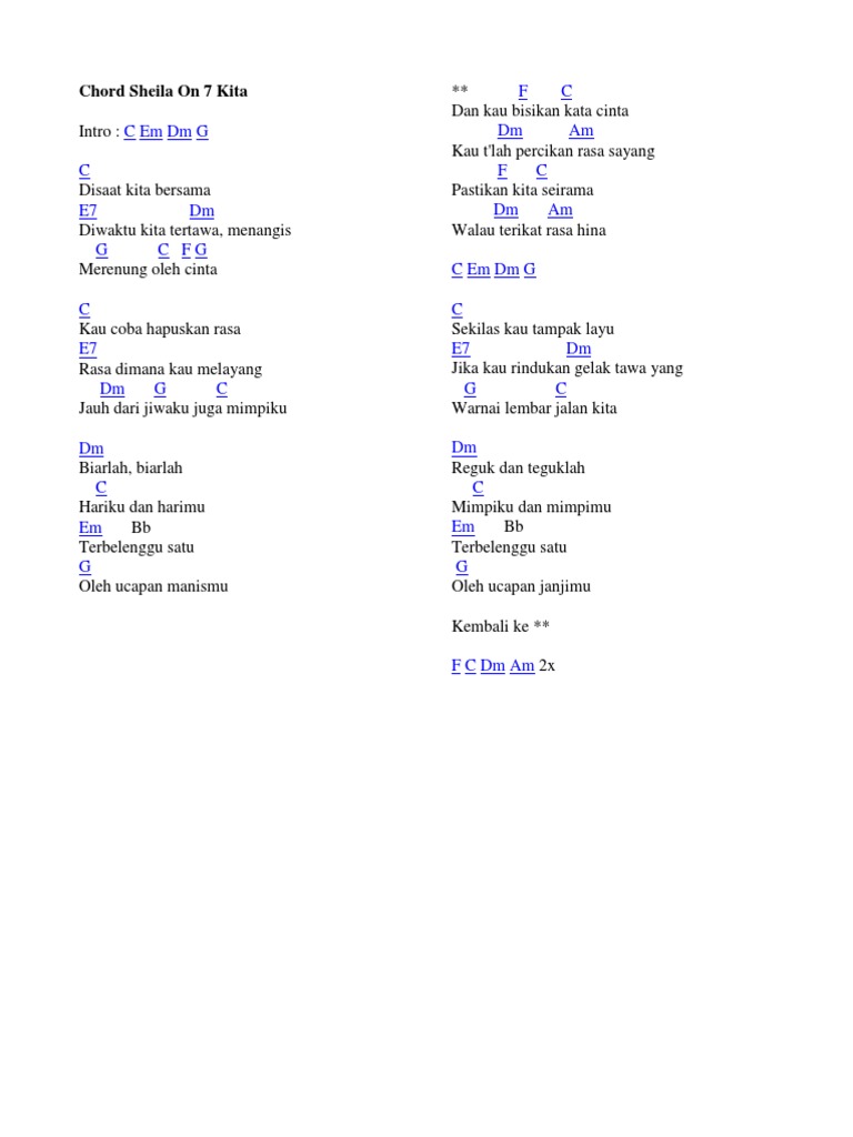CHORDS USED Dm Bb F A Gm C Released 2017 Intro Dm Bb F A Verse Dm Bb Telah ku berikan F A Semuanya terhadapmu Dm Bb Telah ku lakukan F A Semuanya terhadapmu woaa Chorus Dm Gm Ku berikan semua cinta dan harapanku C F Ku lakukan semuanya demi cinta kita Gm A Kau hancurkan semuanya Dm Bb Kenangan CHORDS. Dulu kita dekat banget bercanda bareng sedih bareng makan bareng semuanya bareng-bareng tapi kini dunia sudah berbeda dan kita tak lagi bersama untuk melakukan hal bersama-sama. F kala malam tidurku G tak lena mengenangkanmu.