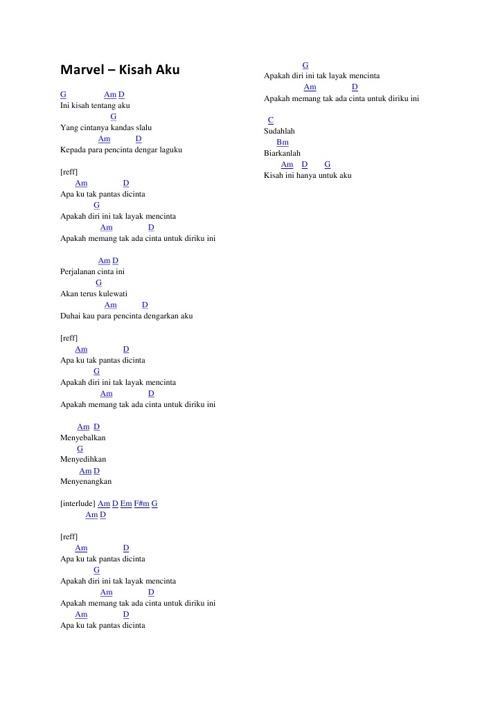 Am Am G C ku coba ungkap tabir ini Dm A Dm kisah antara kau dan aku G C terpisahkan oleh ruang dan waktu Dm E Am. Verse 3 C F Kuberi segalanya semampunya aku Em7 Dm C Meski cinta harus terbagi dua G F Mungkin kamu tak pernah tahu Dm7 G C Betapa. Kunci Gitar Firman - Kehilangan.