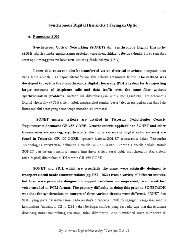 Sdh Synchronous Jaring An Optik Transmisi Data Protokol Komunikasi