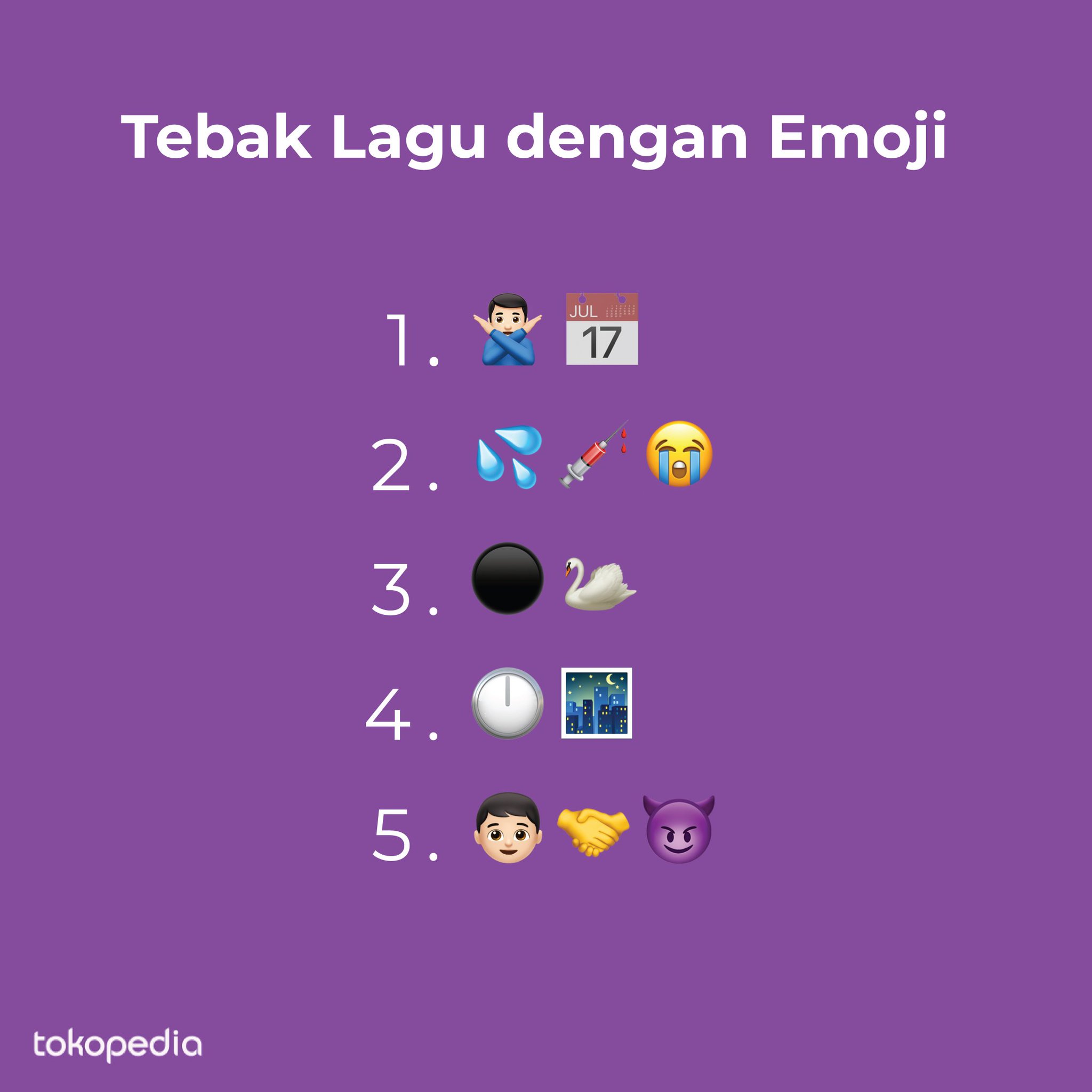 Tokopedia On Twitter Buat Nemenin Kamu Dirumahajadulu Main Game Tokopediaxbts Yuk Coba Kamu Bisa Nggak Tebak 5 Judul Lagu Di Bawah Hanya Dari Lihat Emoji Aja Yang Bisa Coba Kasih